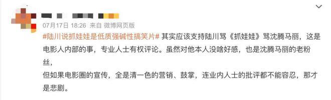 再者,业内人士参与电影评论本就敏感,如果导演一说某电影不行,观众就攻击其作品,那内娱的活人也就更少了,因此还是应该维护陆川批评的权利的。