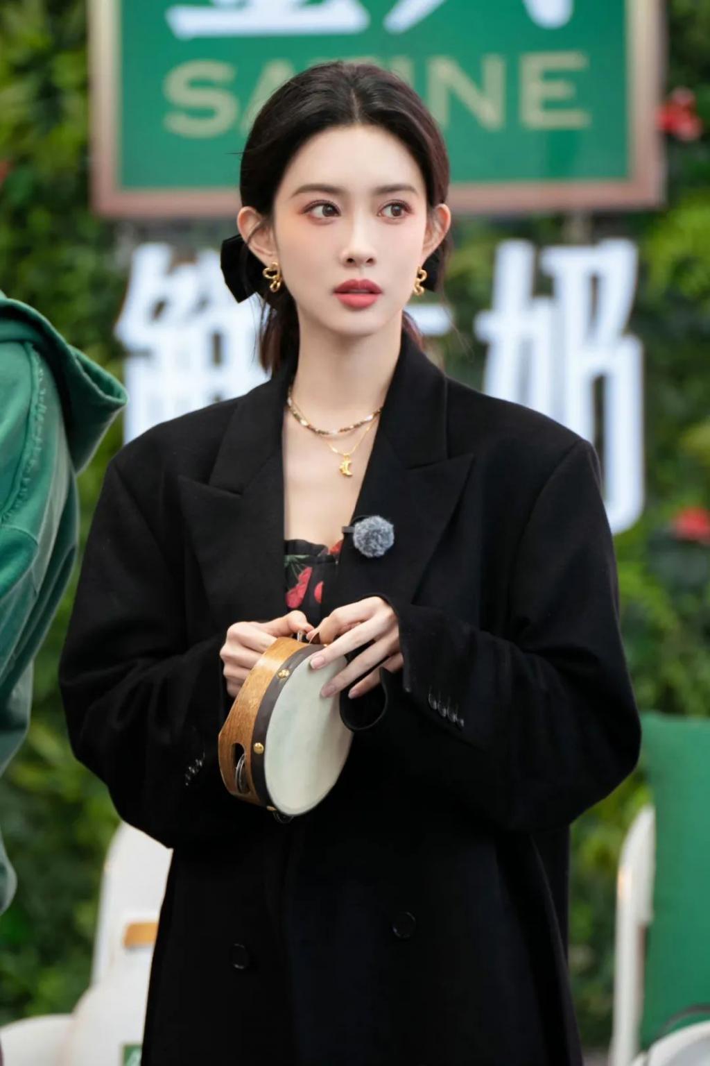 在发型上,值得注意的一点是,不用刻意营造复古大波浪卷,自然顺垂的蓬松发质会让人感觉氛围感更足。