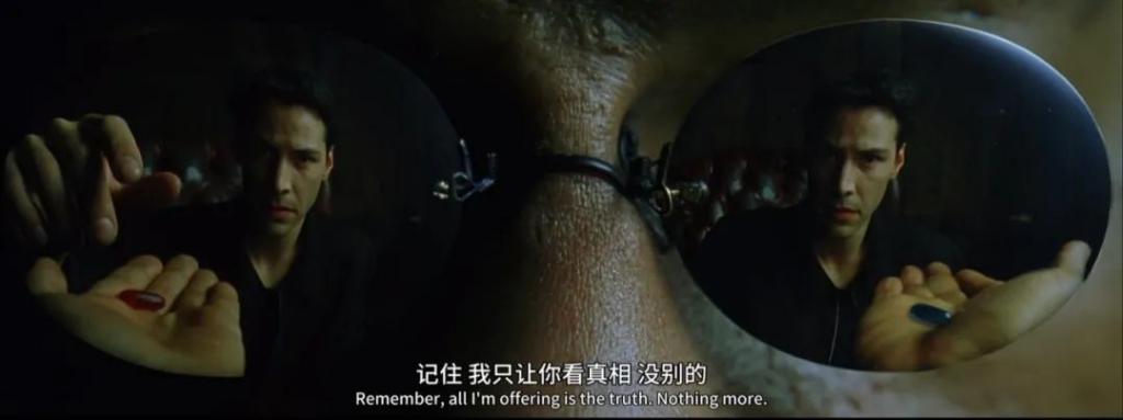 但好像又藏着《黑客帝国》的奥义,它给你两个药片,选择悲伤还是虚无。