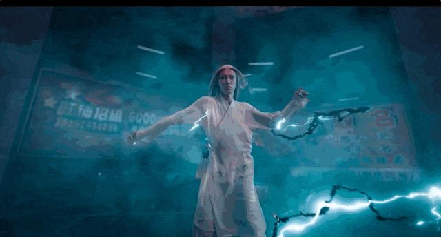 比如片中,张楚岚和同门小师叔张灵玉,使用阴阳雷法的对决。