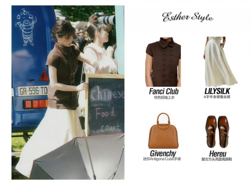 棕色双排扣上衣 + 蚕丝半身裙 + 盘发,法式优雅精髓拿捏。