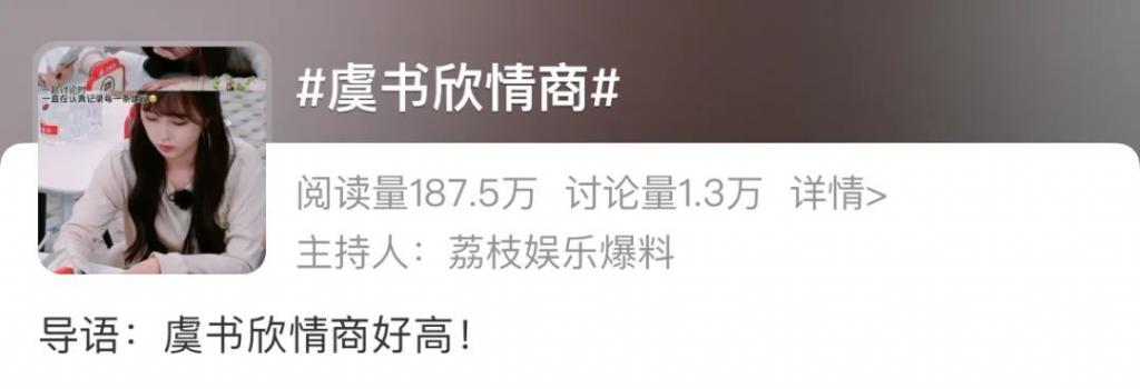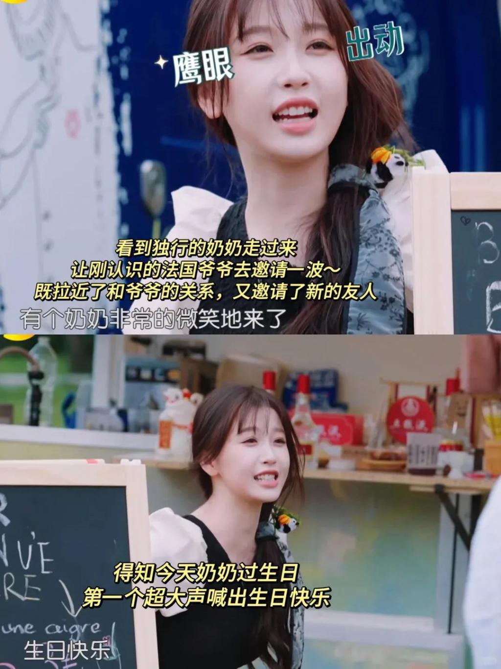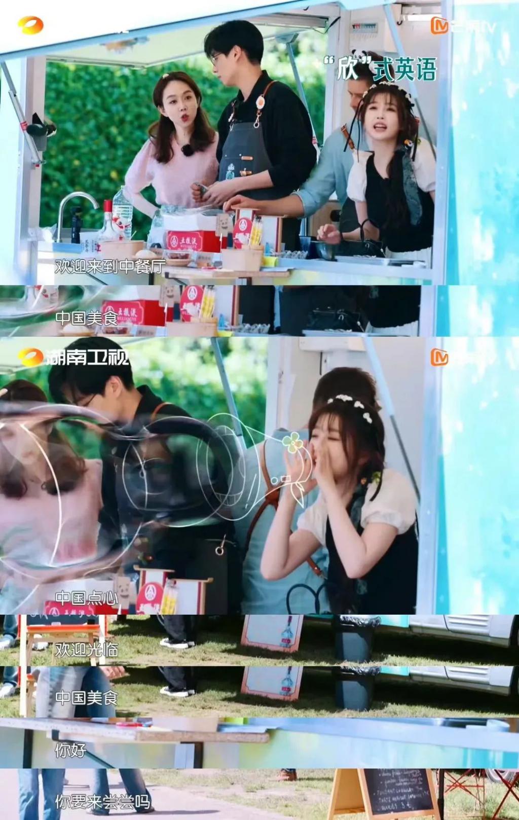 对外社交更是欣欣子的舒适区,揽客毫不含糊。他们在摆餐车的时候,一开始谁都没好意思开口吆喝,虞书欣又变成了那个社交达人,把这个场子盘活,完全就是虞书欣和她的 7 个小 "i" 人,有了虞书欣大家氛围都好了起来。