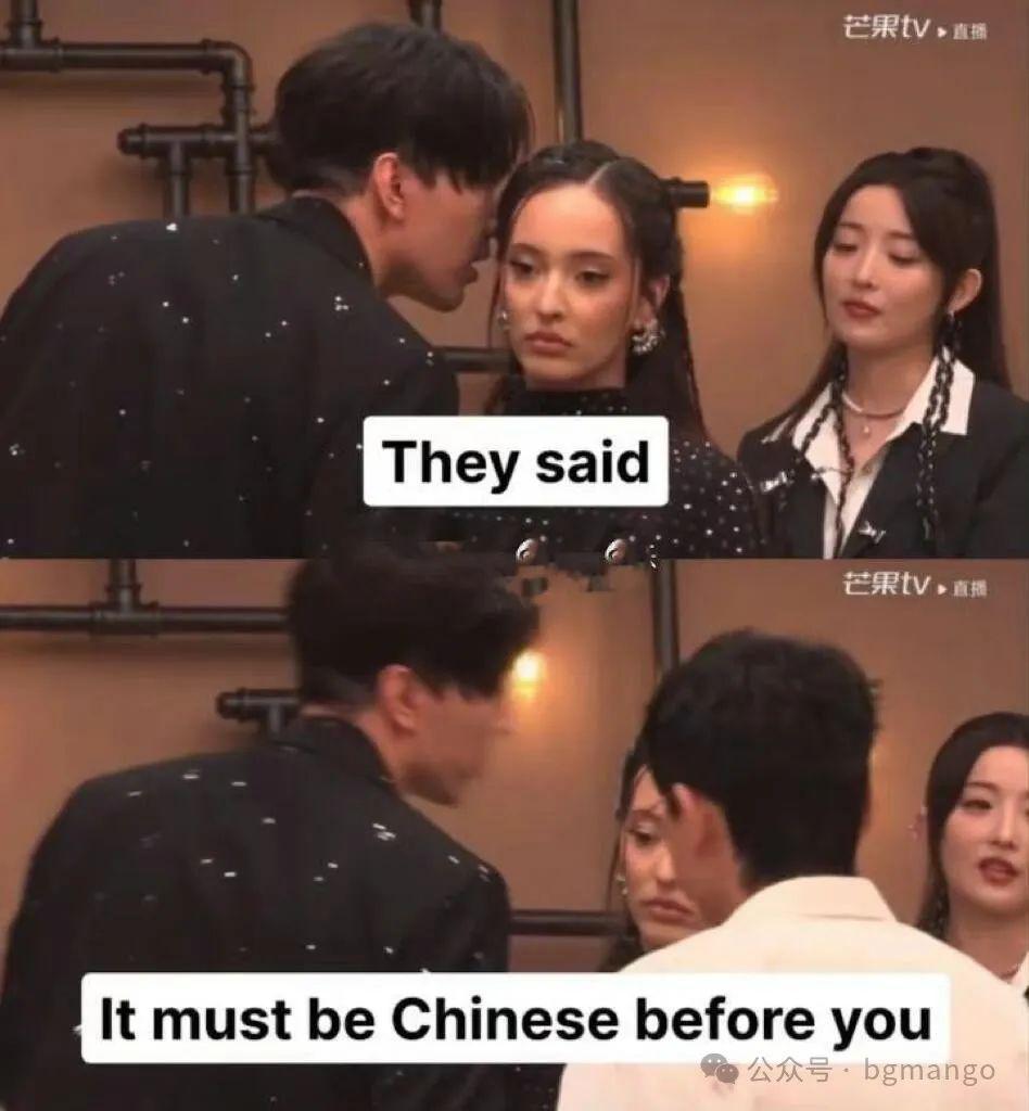直译过来:" 在你们上台之前,我想告诉你们一些事情,当他们邀请我唱歌的时候,他们说必须是中国人在你前面。" 这个 befor 肯定不是指出场顺序,因为凡希亚是第一个出场的,那英压轴出场。这顺序,懂的都懂。