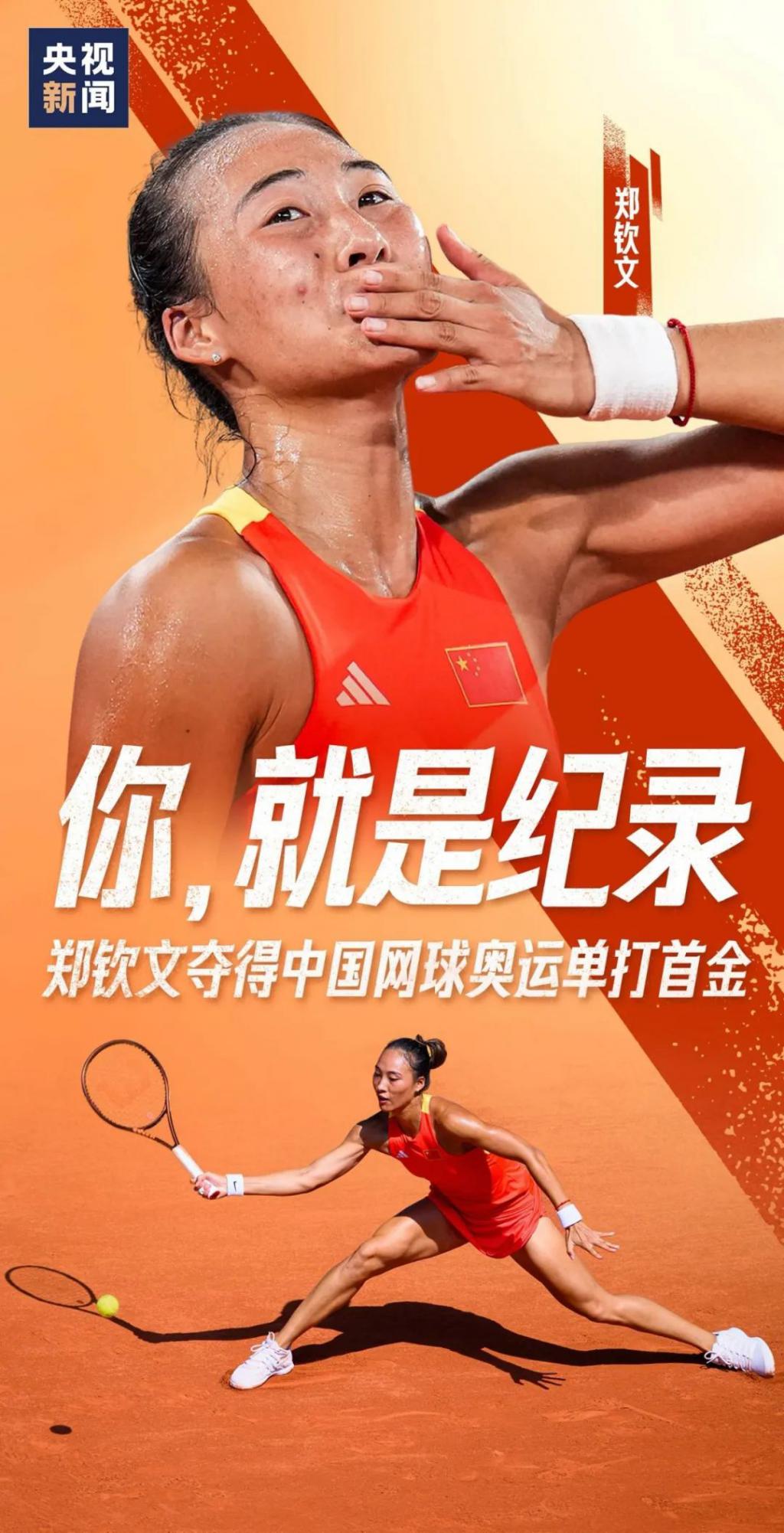 这是郑钦文首枚奥运金牌。