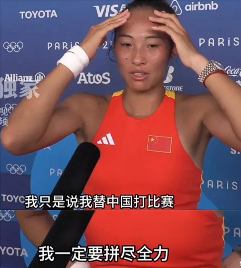 她笑着喘气:" 我已经很累了,但是为了祖国,我可以再比三个小时。"