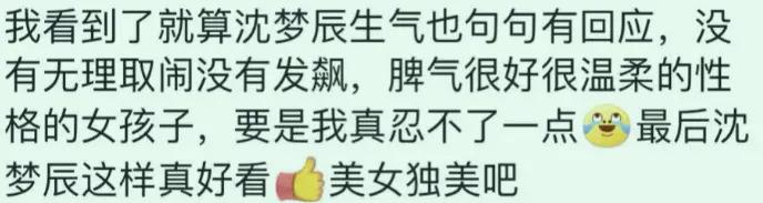 看到沈梦辰哪怕委屈也句句有回应,依旧好声好气地跟杜海涛沟通,