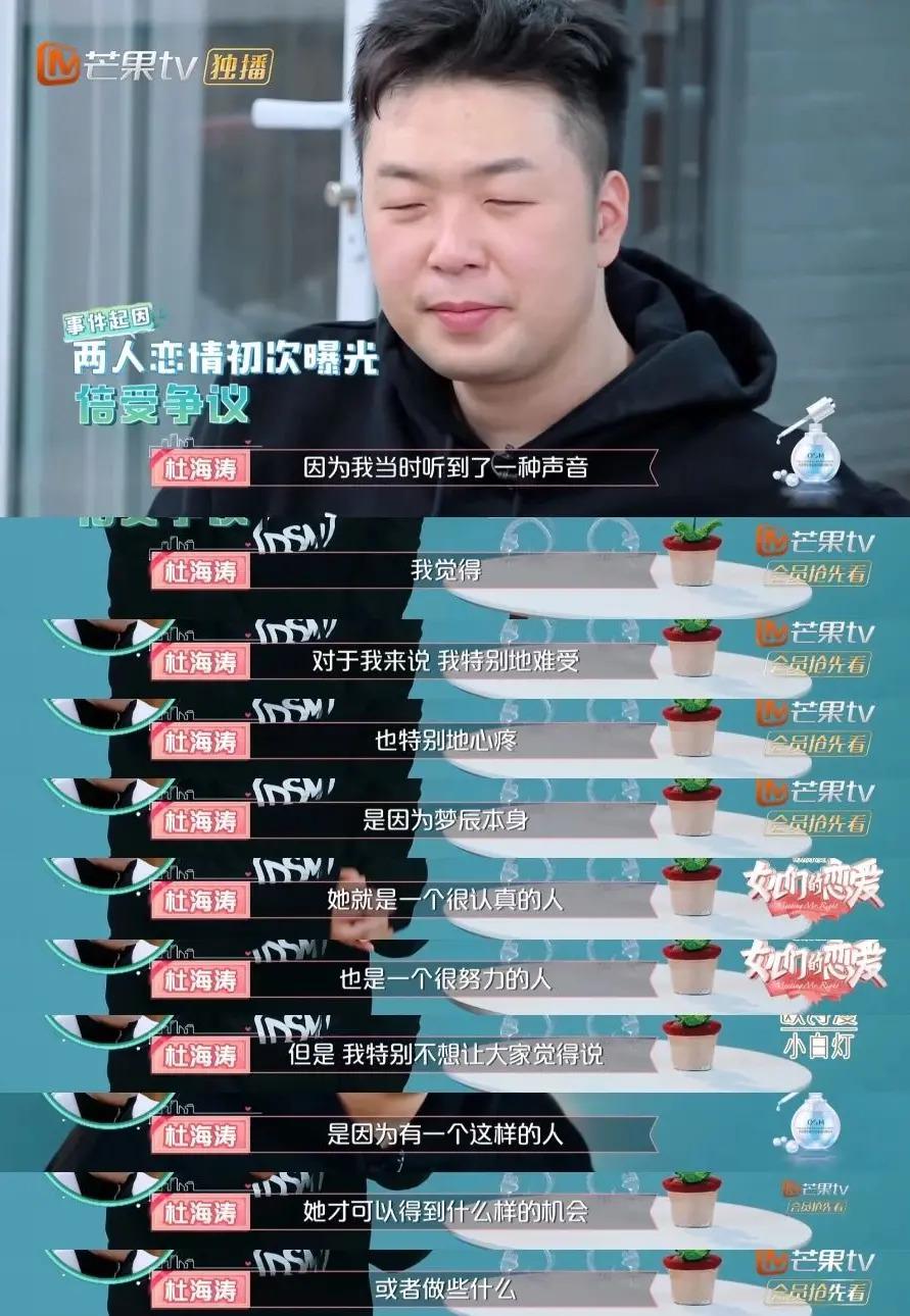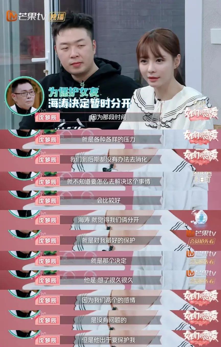 杜海涛表示自己不想让沈梦辰背负舆论压力,出于心疼,提出了分开。