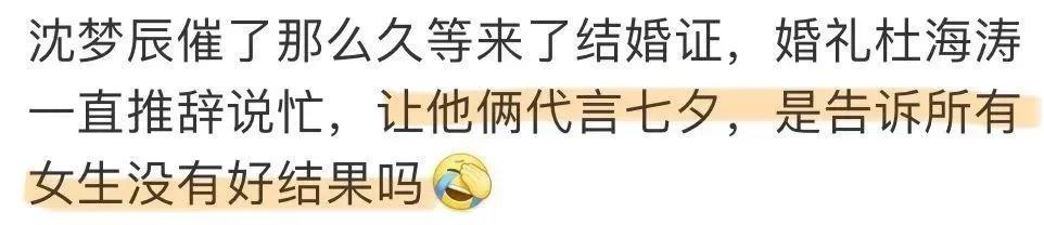 加上杜海涛和沈梦辰一直有着女方很想办婚礼但男方始终不兑现的争议,