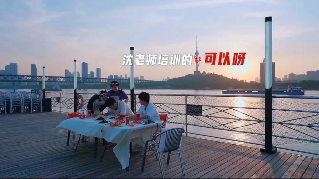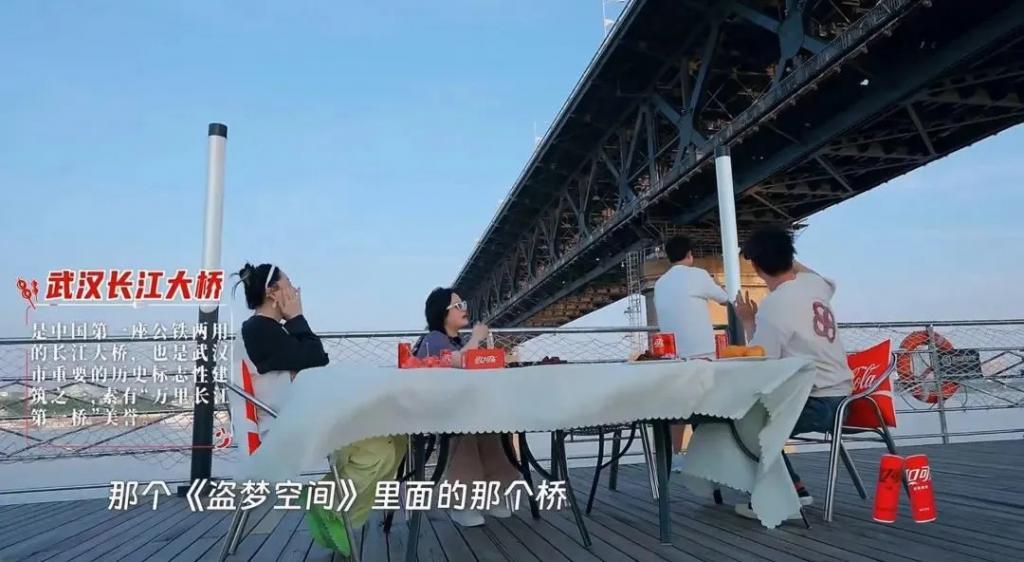 节目里几个人坐在武汉长江大桥下聊天,
