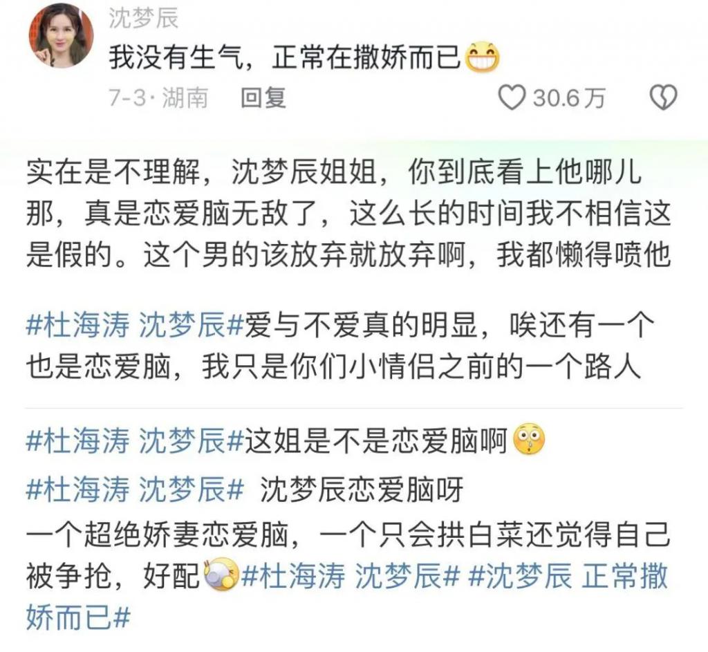 为了缓和矛盾出面解释自己没有生气只是在撒娇的沈梦辰,又成了娇妻、恋爱脑⬇️