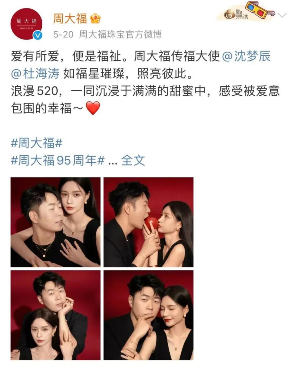 明明 5 月份官宣杜海涛、沈梦辰担任周大福传福大使时,