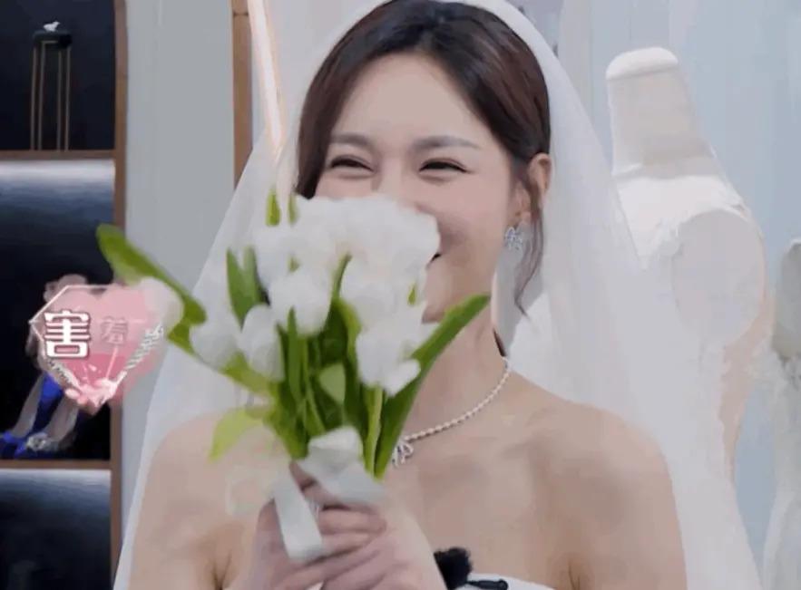在节目里穿上婚纱时也很开心,
