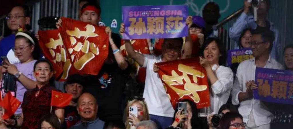 孙颖莎人气旺,观众席上超过 9 成以上的观众拿着的都是孙颖莎的应援旗。