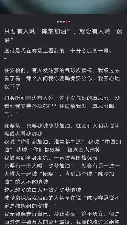 只要有一个人喊陈梦加油,就会有另一堆人一起喊 " 闭嘴!",直到那个人再也不敢呐喊。