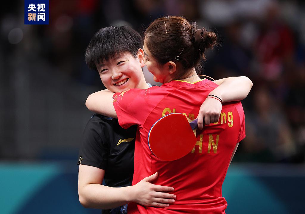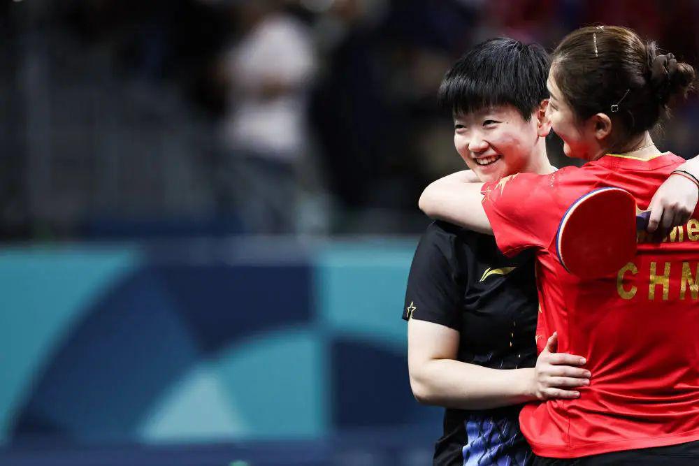● 比赛结束后,陈梦和孙颖莎热情相拥