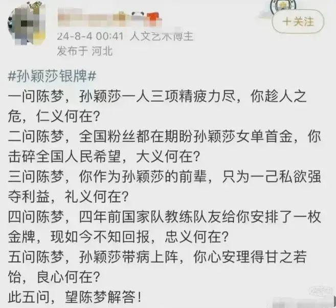 还有人对陈梦发出五个诘问: