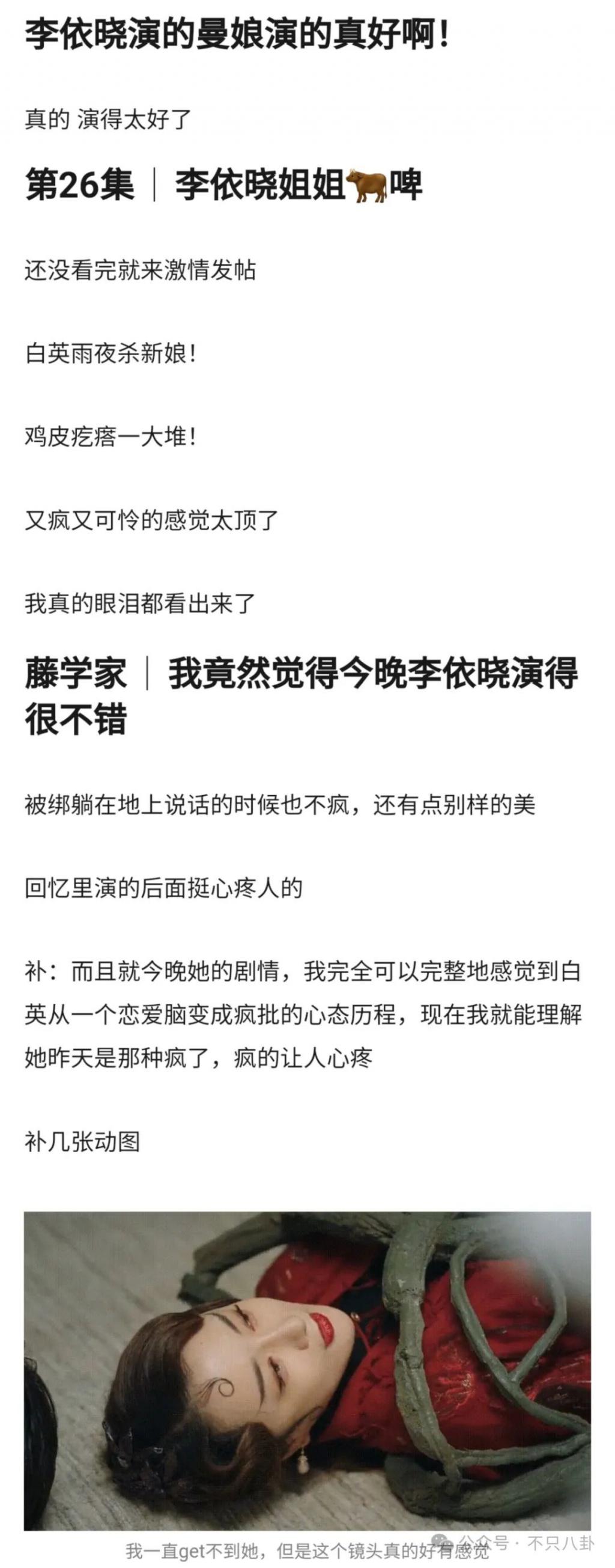 在经历被狗咬事件后李依晓沉寂了一段时间,重新再出发的她放下古装美人的光环,找到了适合自己发挥的恶毒女配赛道。