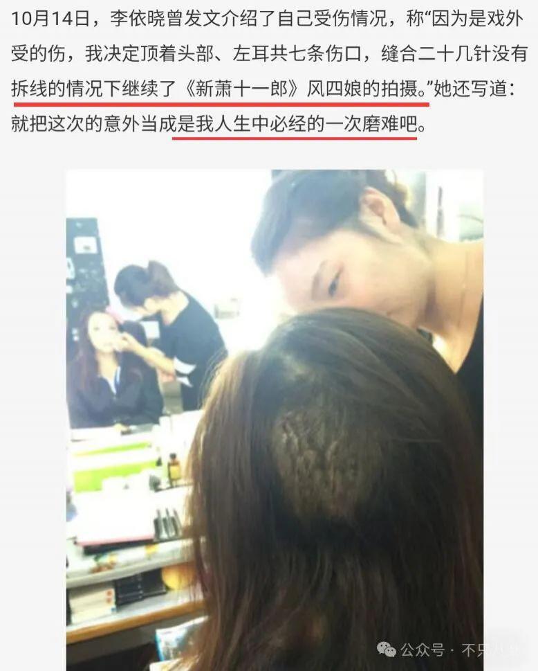 李依晓并未提及自己受伤的原因,由于她参演的《新萧十一郎》正在拍摄,她未等伤口痊愈便继续投入到了工作中。