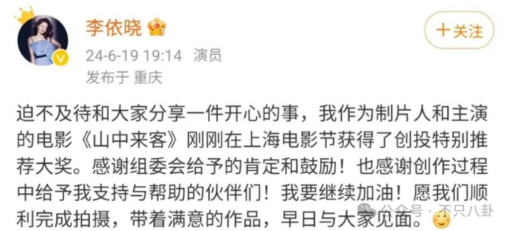要说两人的交集,今年六月,电影《山中来客》在上海电影节获得创投特别推荐大奖。