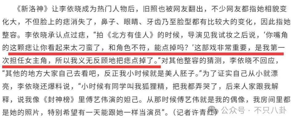 对此李依晓回应过,她说自己从小就是美人胚子,只承认点过痣。