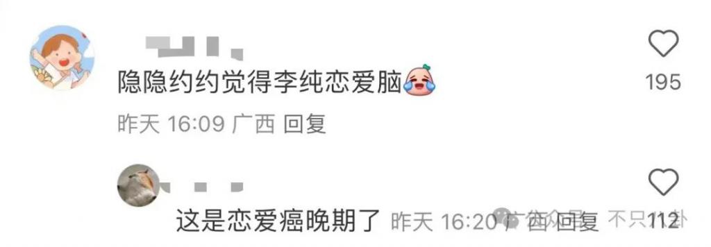 大家都担心李纯是恋爱脑,怕她恋爱上头跌入渣男坑 ↓