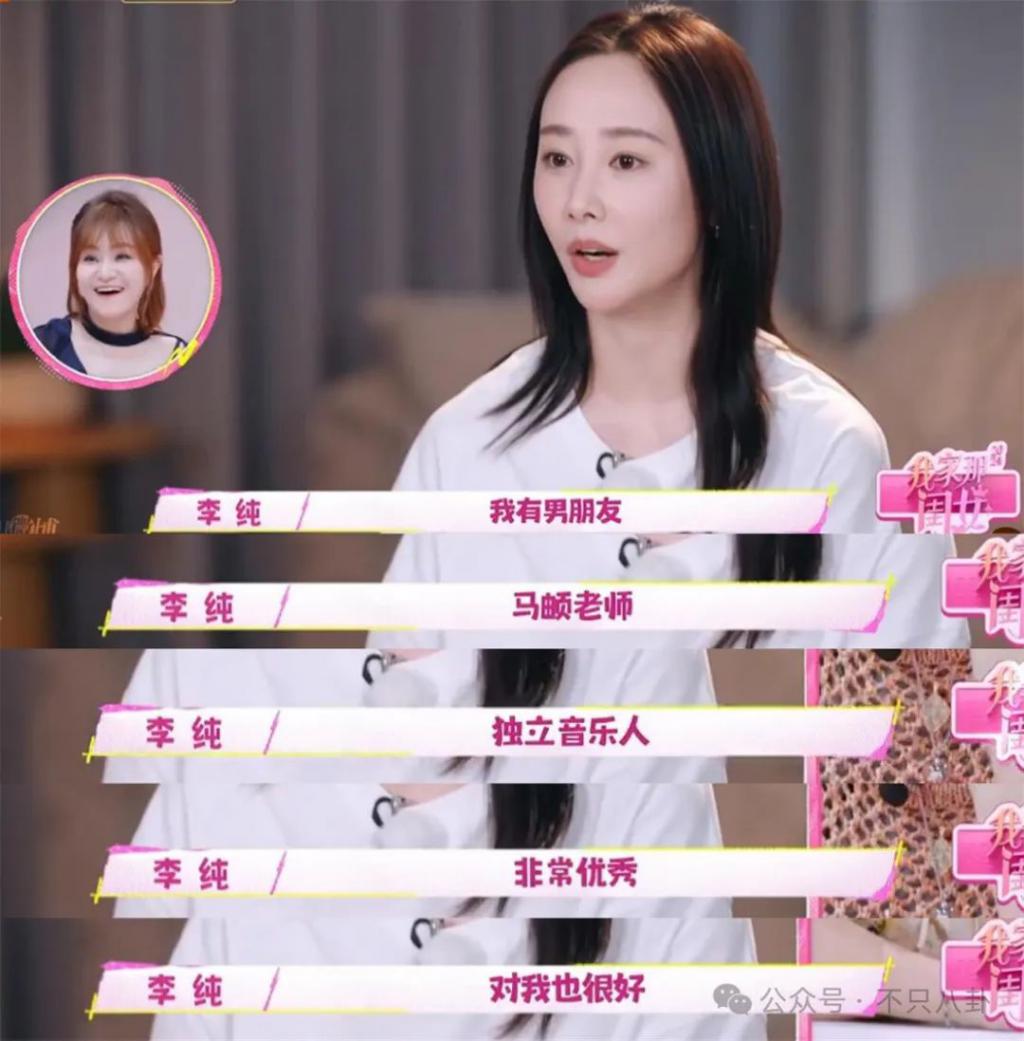 《我家那闺女》节目里,只要一提到马頔名字,李纯就合不拢嘴,介绍马頔时非常骄傲:" 我男朋友马頔老师,独立音乐人,非常优秀,对我也很好。"