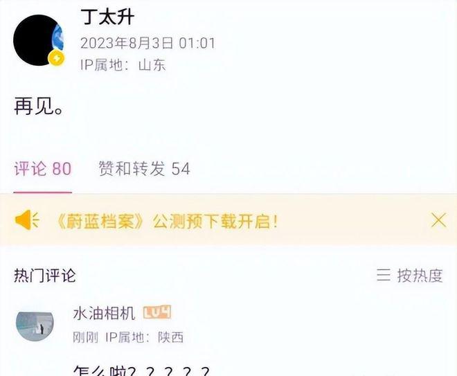 随后,凌晨 1 点丁太升在 B 站发布动态 " 再见 " 后,他的账号就被封禁了。