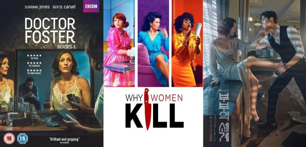 2014 年,大卫 · 芬奇执导的电影《消失的爱人》为这种类型融合打了个样儿,之后各国陆续涌现出相关爆款——英剧《福斯特医生》、日剧《我的恐怖妻子》、美剧《大小谎言》《致命女人》、韩剧《夫妻的世界》等,令其题材含金量得到越来越大范围的验证。