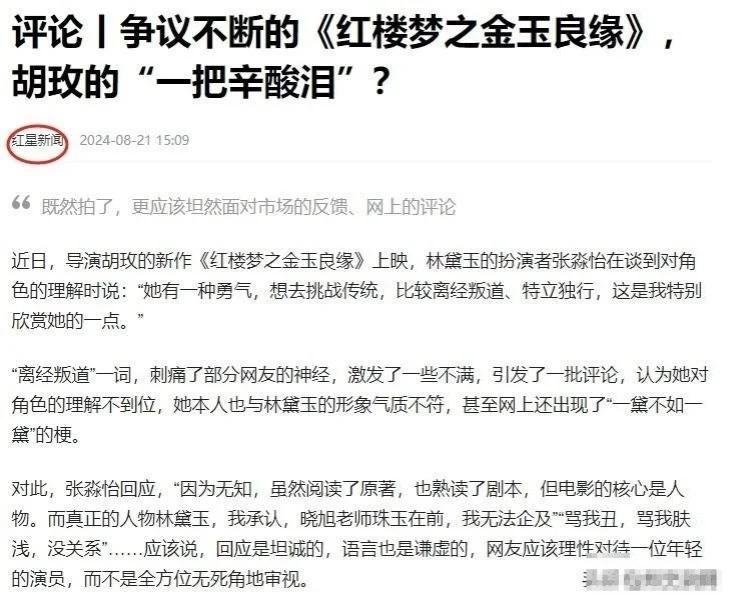 导演胡玫的新《红楼》凭一己之力让曾经饱受非议的李少红受到些许认可。