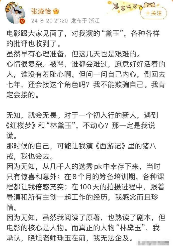 看到网友对自己的恶评,张淼怡在 8 月 20 日也是迅速作出了回应。