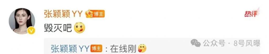 随后她还发截图吐槽张兰,不仅说张兰 " 智障 ",还骂张兰是 " 老太婆 ",并在评论区补充," 毁灭吧,在线刚 "。