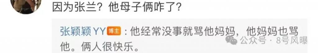 但他事业上却靠张兰,且两次摔倒时都大骂张兰,张兰事后还怪张颖颖没照顾好汪小菲,母子俩有时还会互骂,似乎都很享受这种相处方式。