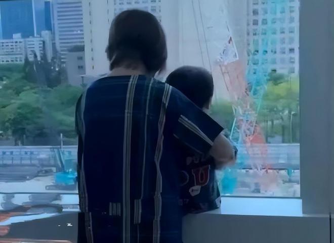 另外还有奶奶搂抱着孙儿看大楼外建设的车子,林志玲的儿子看得特别认真,也特别服奶奶的陪伴。