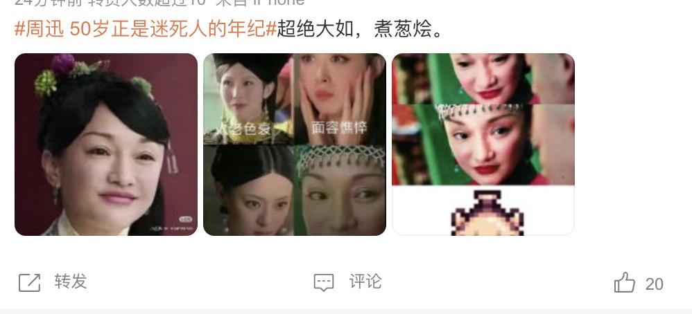伴随着周迅这一组造型的曝光,还有一个词条上热搜了,说的就是「50 岁正是迷死人的年纪」。