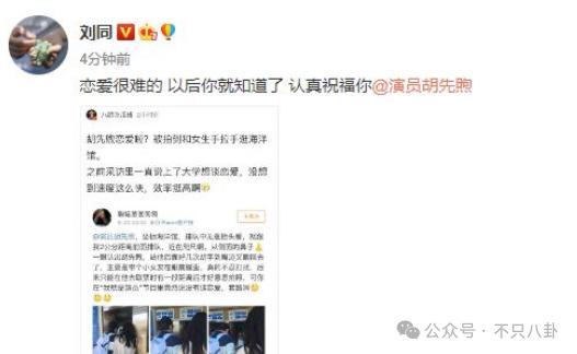回看过往,那会胡先煦的经纪公司还是光线,他的同事也是上司刘同在他公开和刁卓恋情的时候就说:"恋爱很难的,以后你就知道了。"