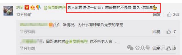 然后还语重心长的对胡先煦说,"恋爱拼的不是快,是久,你加油。"