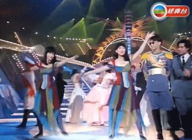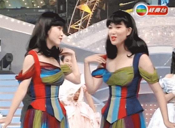 1992 年第十一届新秀歌唱大赛节目上,郑秀文和周慧敏同台表演,两人身着同样的服装。