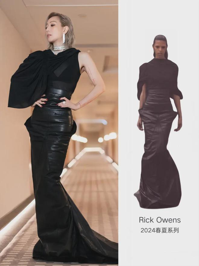 今年 4 月的金像奖颁奖典礼上 Sammi 现身为新晋影后颁奖,这是她休养结束后首次公开亮相。她穿 Rick Owens 2024 春夏系列的哥特风黑裙,戴 Boucheron Quatre 系列高级珠宝,看上去容光焕发,整个人状态很好。▼