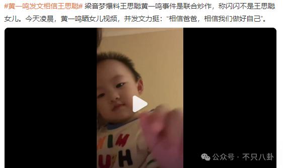 她晒出一则抱着女儿的视频,并发文:" 相信爸爸,相信我们做好自己 "。视频中,黄一鸣女儿想跟爸爸视频通话,王思聪不在线。