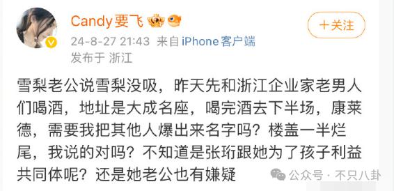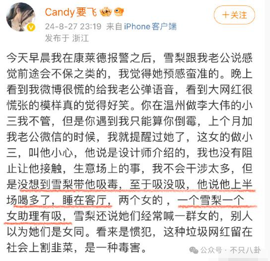 这位网友为何在微博喊(发)话(疯)呢?因为雪梨疑似带着她老公一起吸 ↓