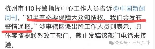 事情就这样在微博上红红火火整整闹了一天,到了晚上,终于尘埃落定,因为杭州警方发通报了!(中国速度)