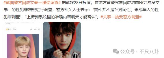 韩娱那边,著名男子演唱组合 NCT 成员文泰一因涉嫌强奸,被当地警方带走调查了 ......