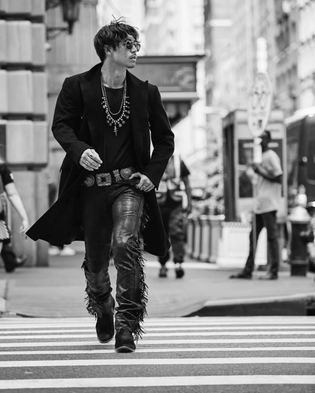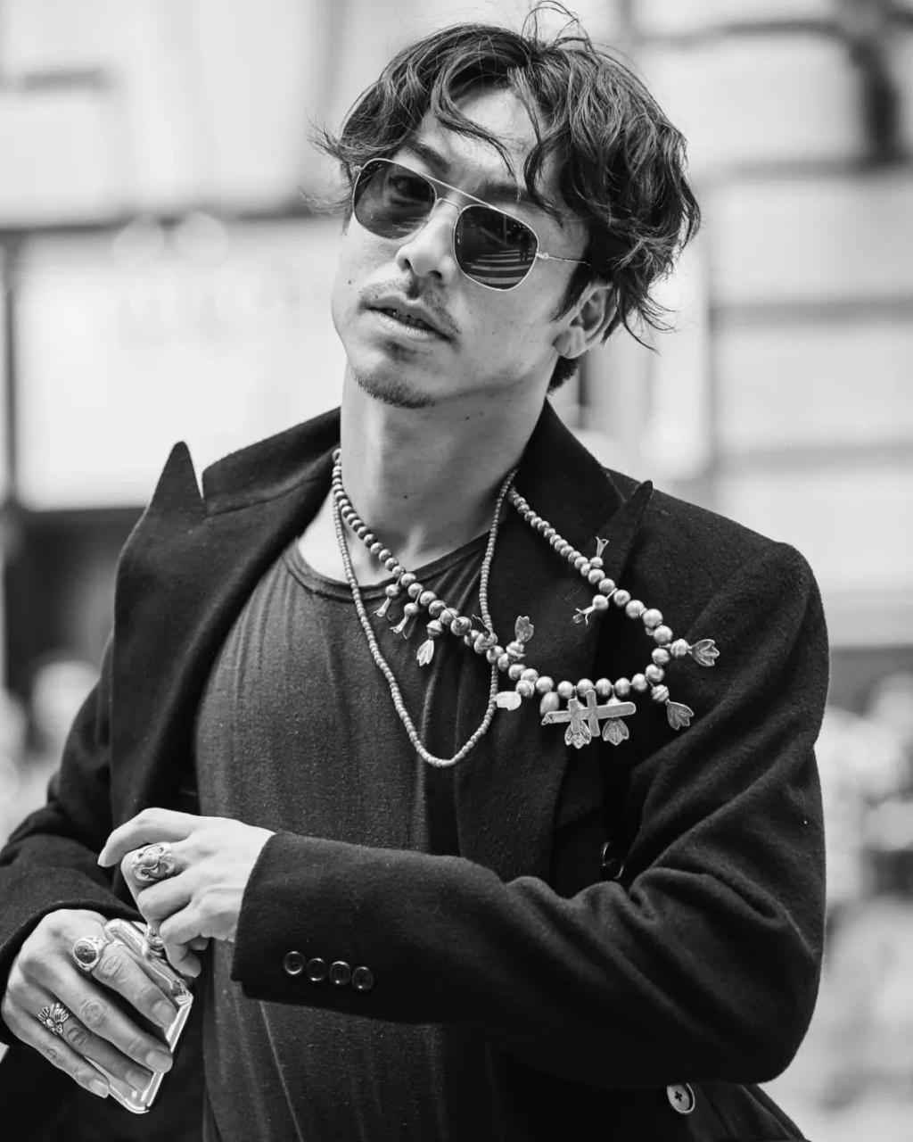 长发、打钉、纹身,怎么张狂怎么来,俗称就是非主流,不过换他身上莫名有种漫撕男走进现实的感觉。
