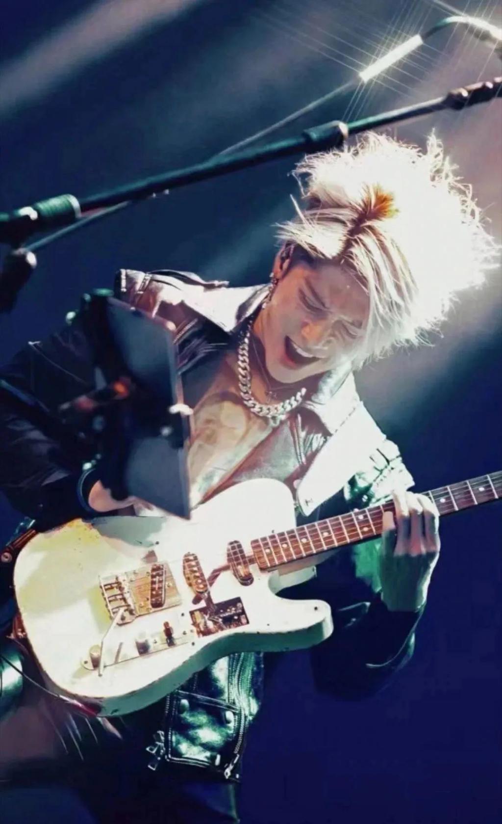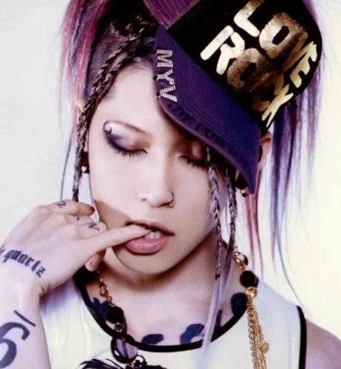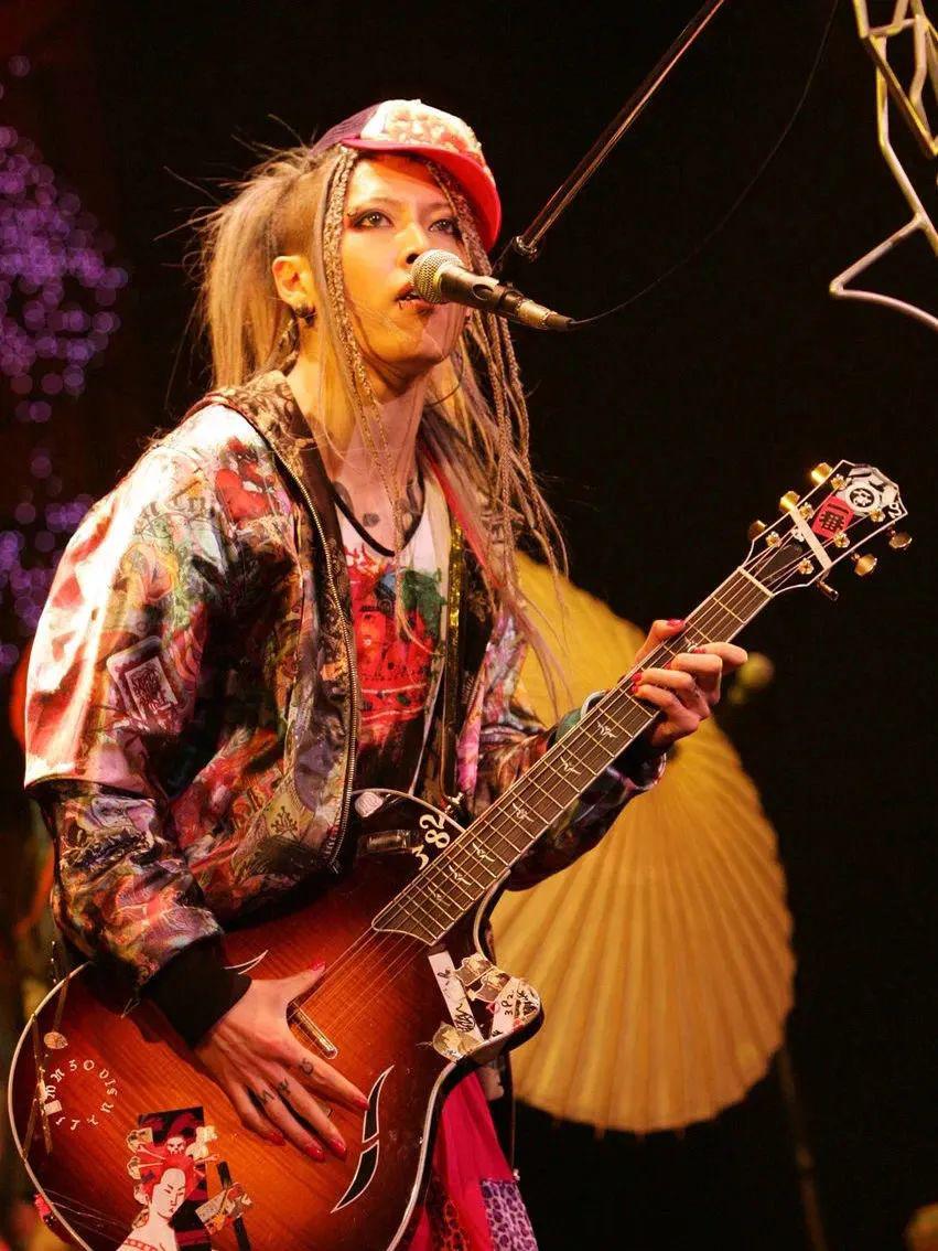 但他年轻的时候其实不长这样,玩的抽象视觉系,先后成为 Due'le quartz、S.K.I.N.、The Last Rockstars 等日本知名摇滚组合的吉他手。