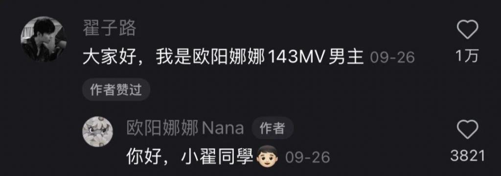 更重要的是,就在那一年的 9 月,欧阳娜娜推出的新单曲《1-4-3》,而翟子路正在这首歌 MV 的男主角。