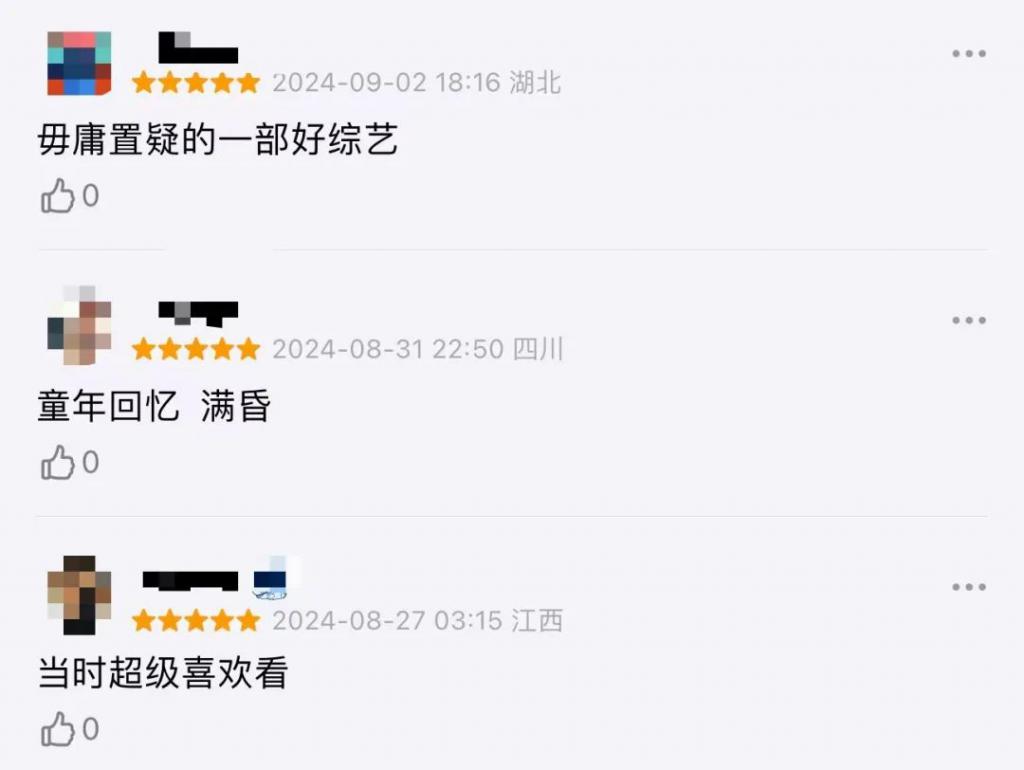 没有勾心斗角,只有欢乐和温馨,难怪大家跨越九年的时间,也要再给节目补上一条五星好评。