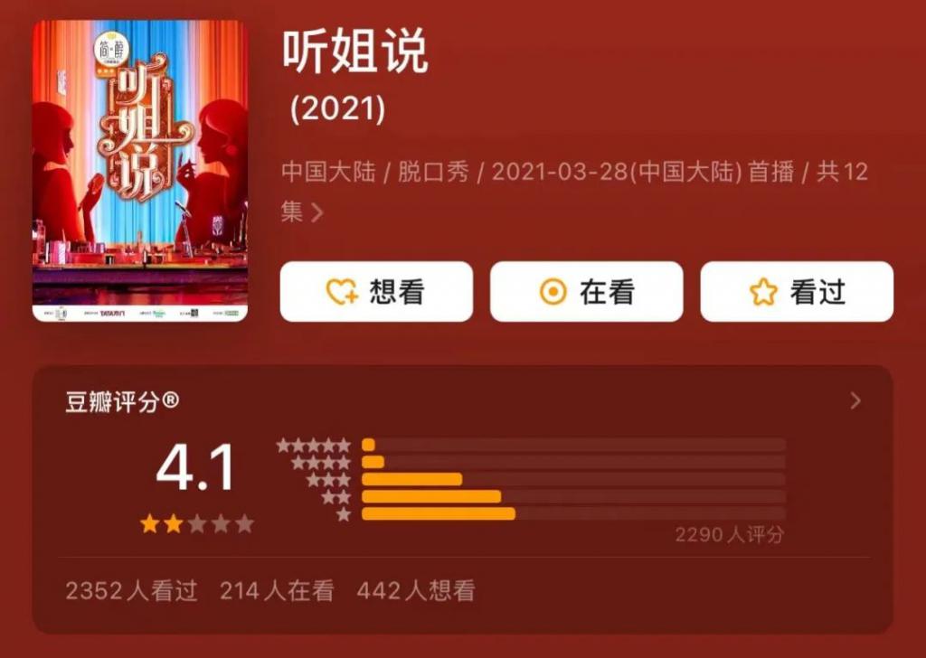 脱口秀类综艺有《听姐说》。