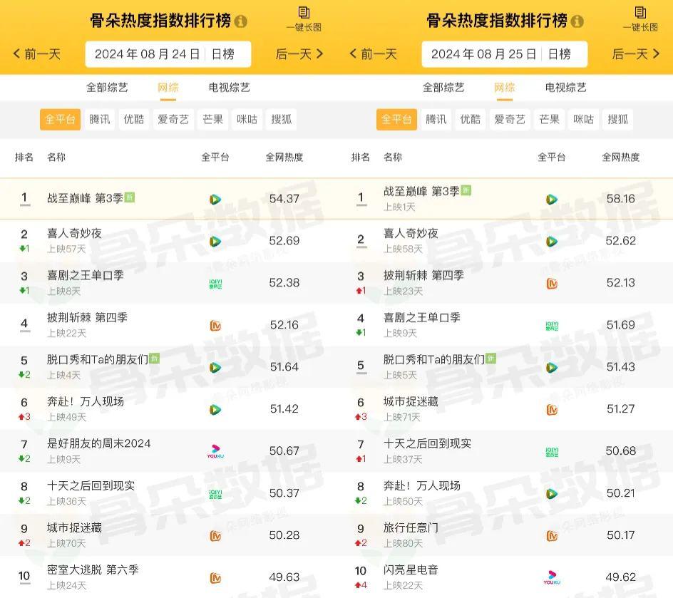 前两期节目播出当天,全平台网综热度指数低不见底,甚至根本干不过播出两个多月的老节目。