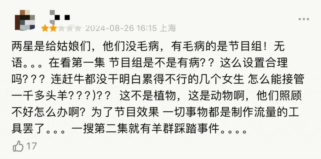 结果却只是让这群女孩承受了因为节目组的离谱策划而造成羊群伤亡的自责难过。