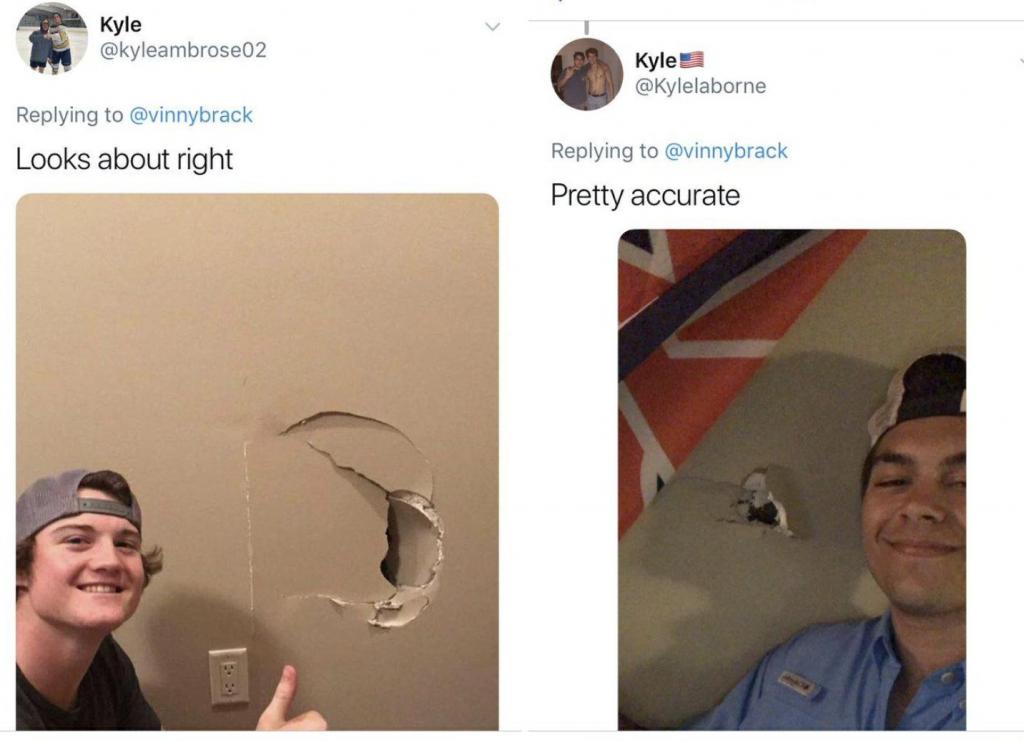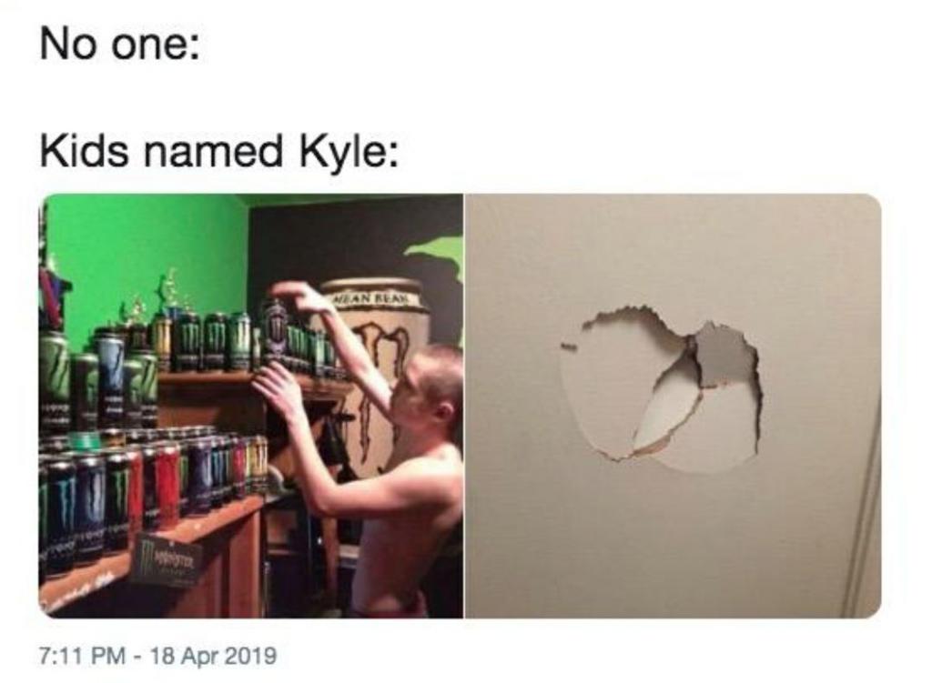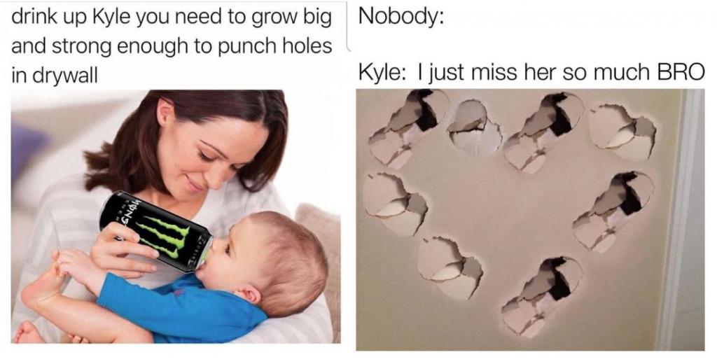 这股砸墙之风在当年掀起过模仿大潮,网友全部都顶着 Kyle 的名号发帖展示饮用完后的奇效——家中没有一扇墙是完整的。